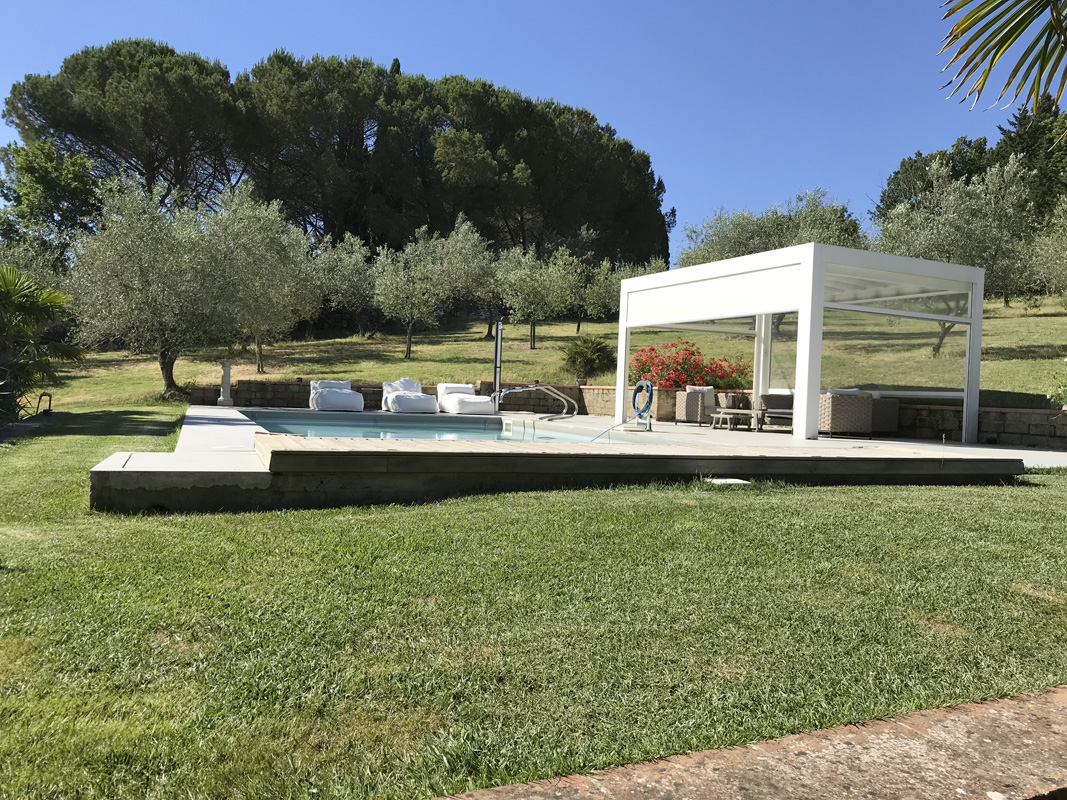 porte di accesso, una su un piazzale in cotto attrezzato con lettini
