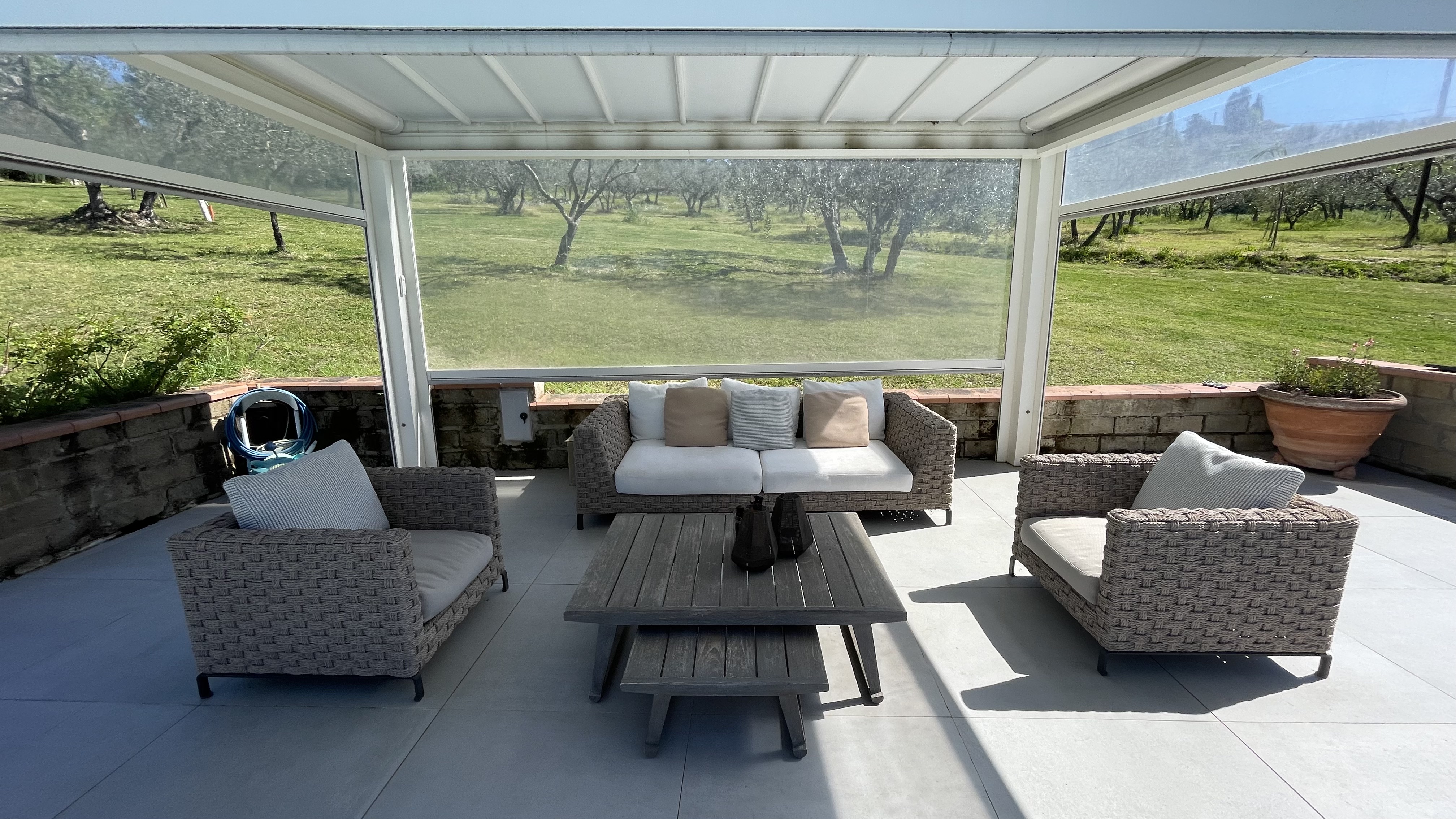 sulla loggia attrezzata con tavolo per 8 persone, sala pranzo-tv con